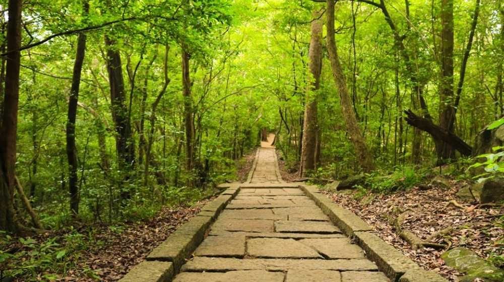 A mystical forest monastery known for its ancient ruins, and spiritual atmosphere.